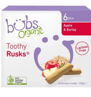 Bubs Organic Apple & Barley Lactose Free Toothy Rusk 100g