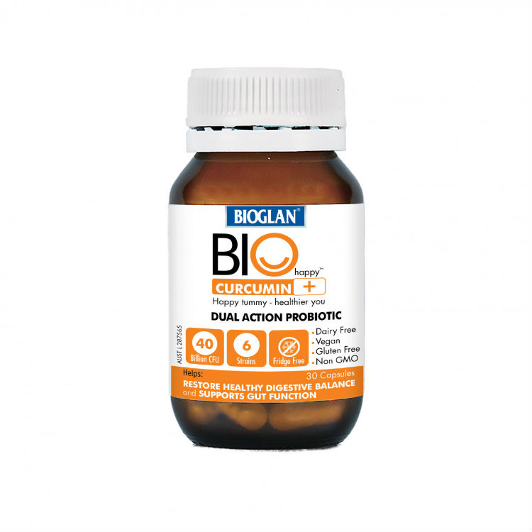 Bioglan Biohappy Probiotic + Curcumin is formulated around scientific and traditional medicine to provide the benefits of Curcumin & Probiotic strains to help restore & support a healthy digestive system